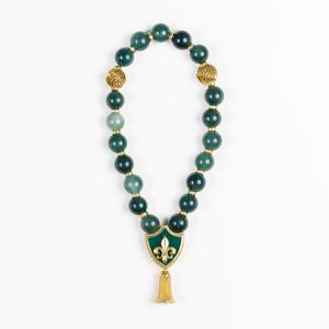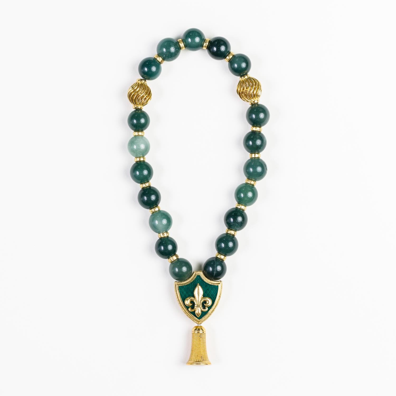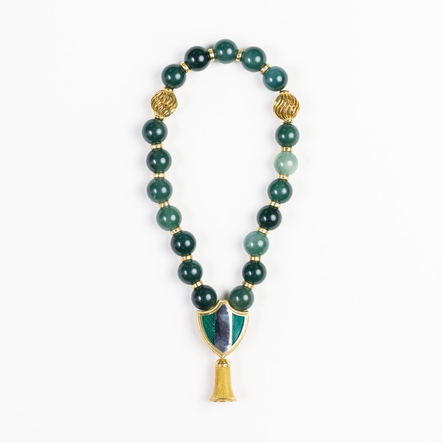 Material: jewelry alloy, ceramic enamel, natural stone, gold-platedWeight: 50 gSize: 160 mmMethod of preparation: handmade