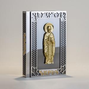 Նյութը՝ պողպատ, ոսկերչական ալոյ, ոսկեպատԹերթերը՝ ոսկեզօծՉափը՝ 120 մմ x 80 մմ x 18 մմՊատրաստման եղանակը՝ ձեռքի աշխատանք