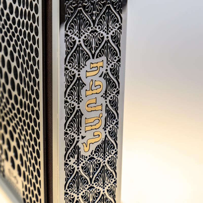 Նյութը՝ պողպատ, ոսկերչական ալոյ, ոսկեպատԹերթերը՝ ոսկեզօծՉափը՝ 130 մմ x 95մմ x 35 մմՊատրաստման եղանակը՝ ձեռքի աշխատանք
