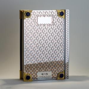 Նյութը՝ պողպատ, ոսկերչական ալոյ, ոսկեպատ, կերամիկական էմալԹերթերը՝ ոսկեզօծՉափը՝ 240 մմ x 165 մմ x 55 մմՊատրաստման եղանակը՝ ձեռքի աշխատանք