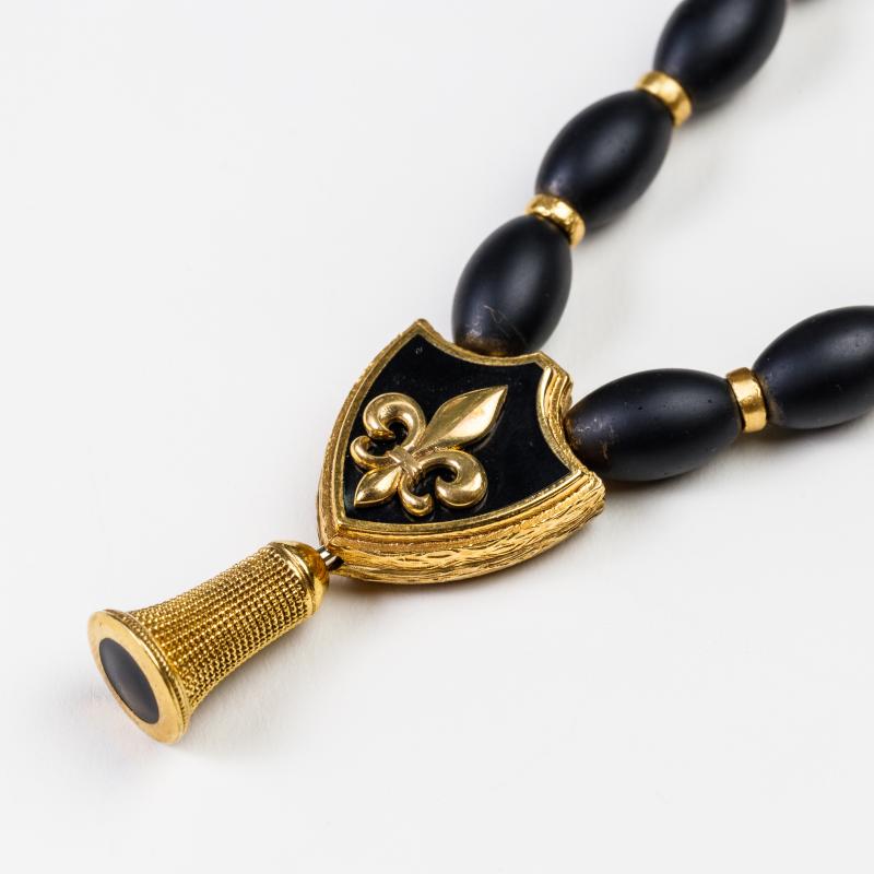 Նյութը՝ ոսկերչական ալոյ, կերամիկական էմալ, բնական քար, ոսկեպատ