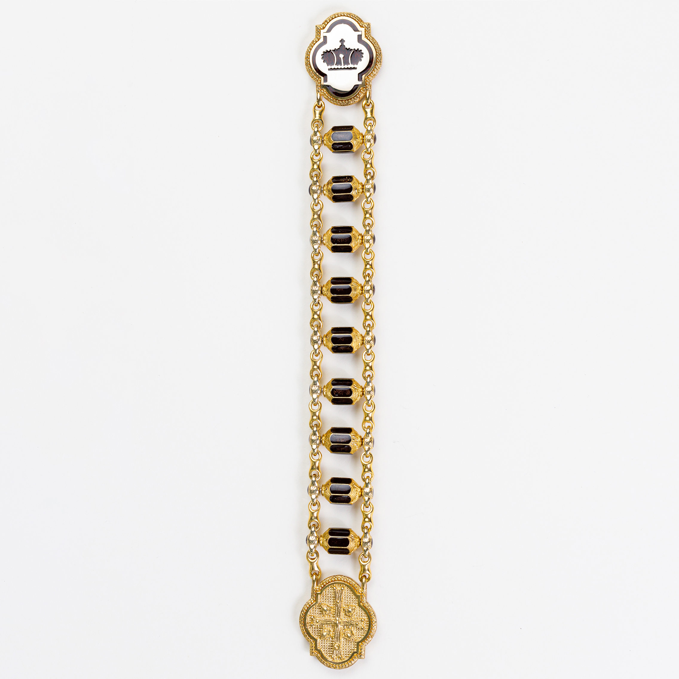 Նյութը՝ ոսկերչական ալոյ, կերամիկական էմալ, ոսկեպատՔաշը՝ 75 գՉափը՝ 200 մմՊատրաստման եղանակը՝ ձեռքի աշխատանք